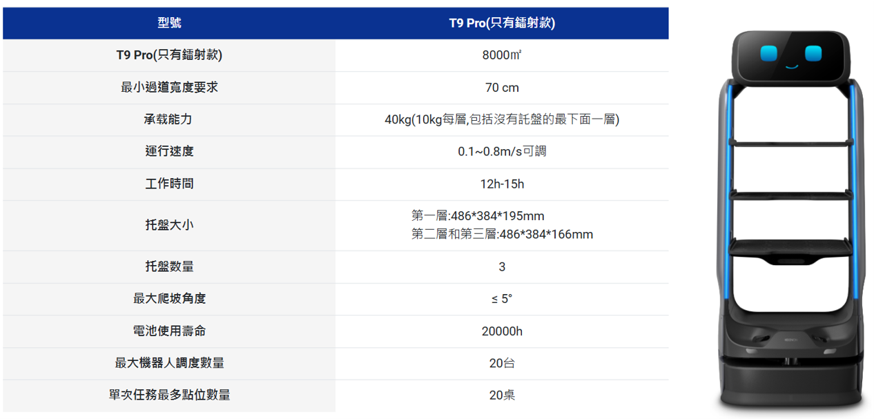AI 避障能力,可應對各式餐廳、人流區複雜環境,適用飯店、餐廳、商場等場域。