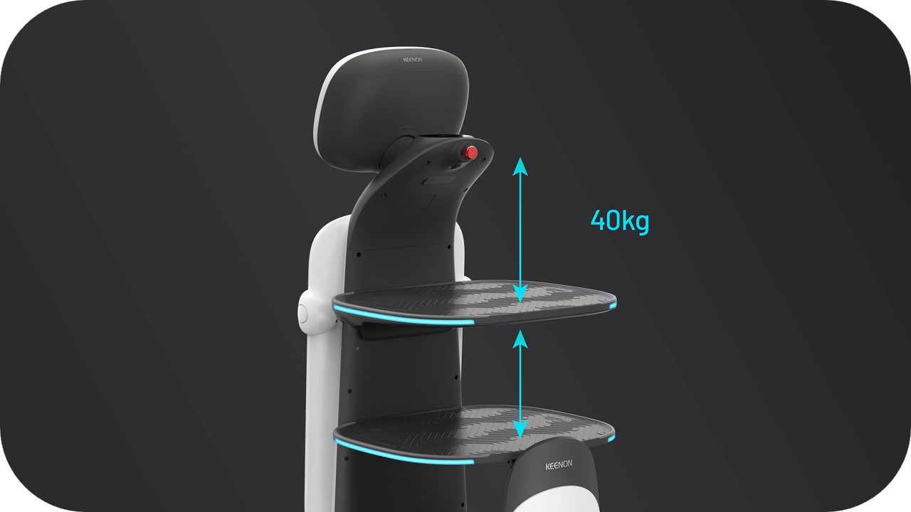 結合互動體驗、智慧科技與美學設計,輕鬆穿梭 59 公分狹窄通道、搬運高達 40 公斤物品,是高流量場域的智慧配送首選。