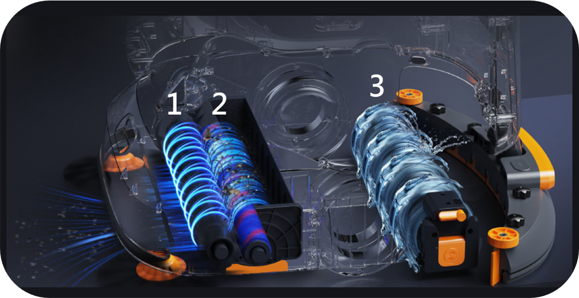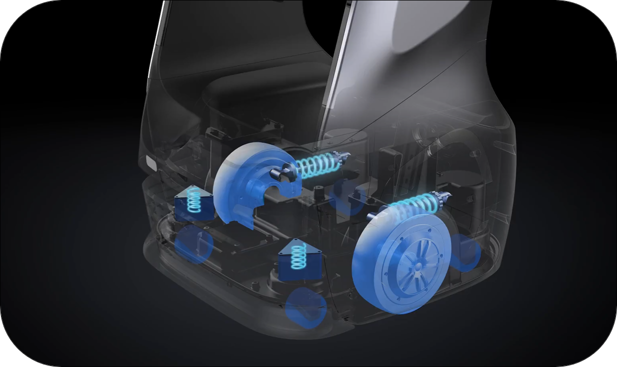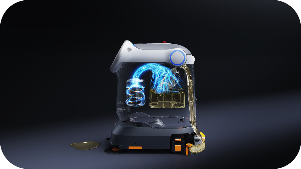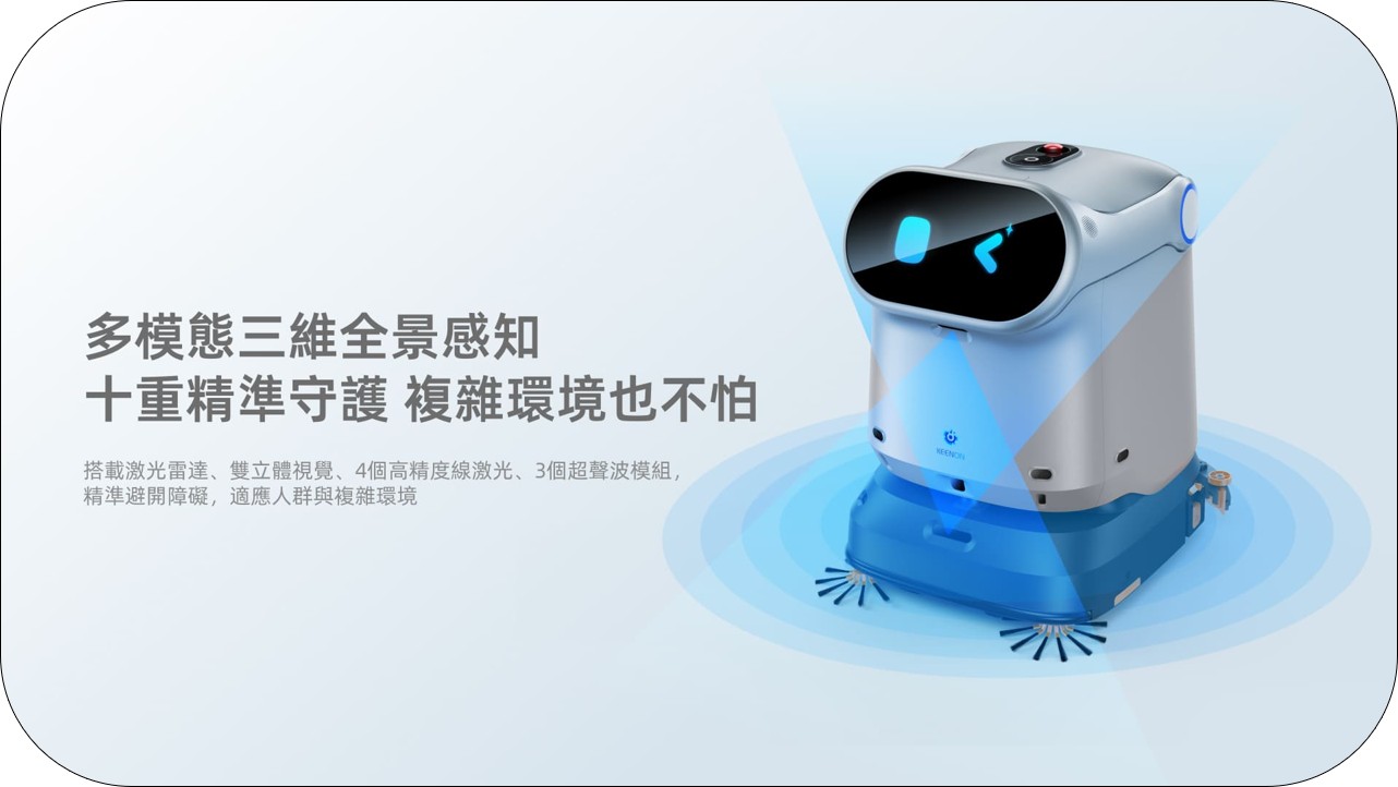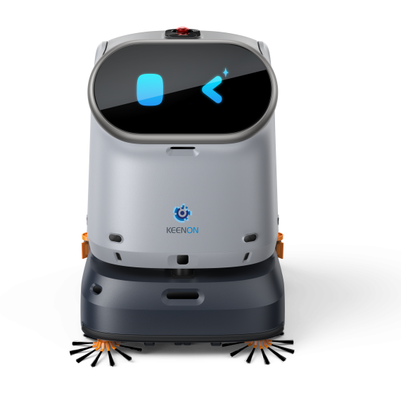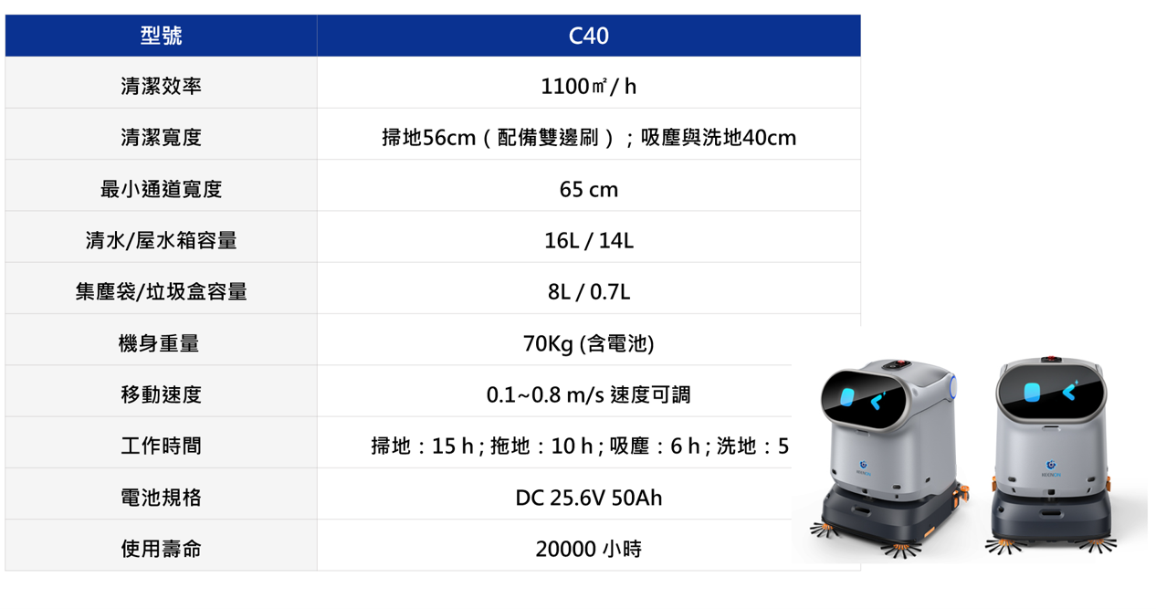 四合一智能清潔機器人,整合掃地、吸塵、洗地與乾燥功能,一機完成全流程清潔。專為中小型商用空間打造,最小通行寬度僅 65 公分。